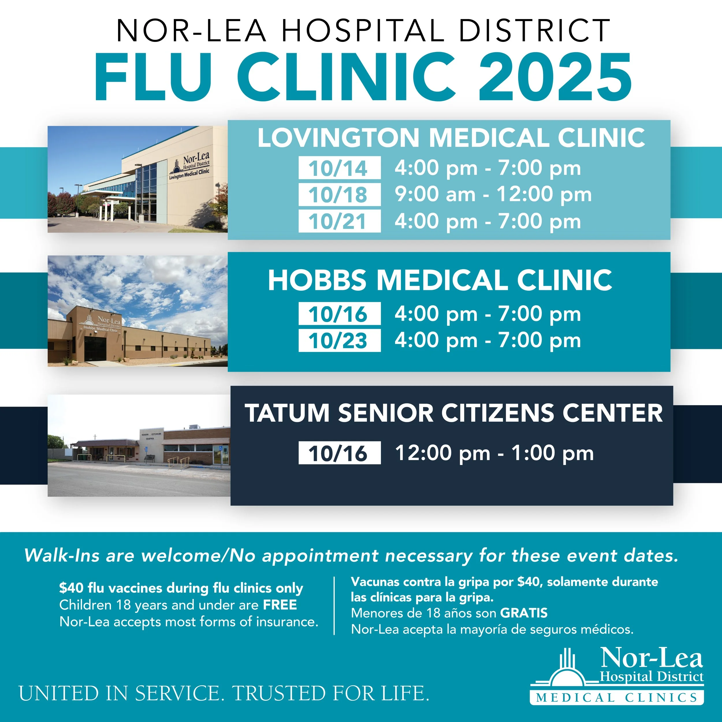 This is to advise that the Nor-Lea Hospital District Board of Trustees will meet in Regular Session on October 29, 2025, at 4:30 p.m. at the Nor-Lea Hospital District Pat Wise Conference Room located at 1600 North Main Ave., Lovington, NM